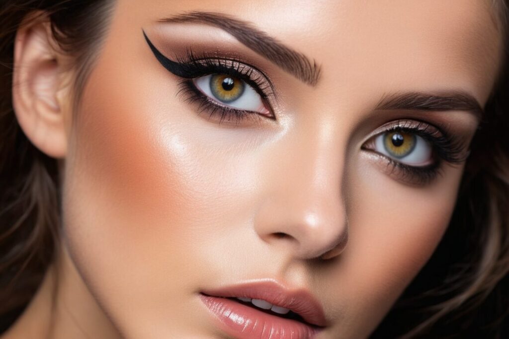 - Rozświetlona cera: Użyj rozświetlacza, aby nadać twarzy zdrowego blasku.